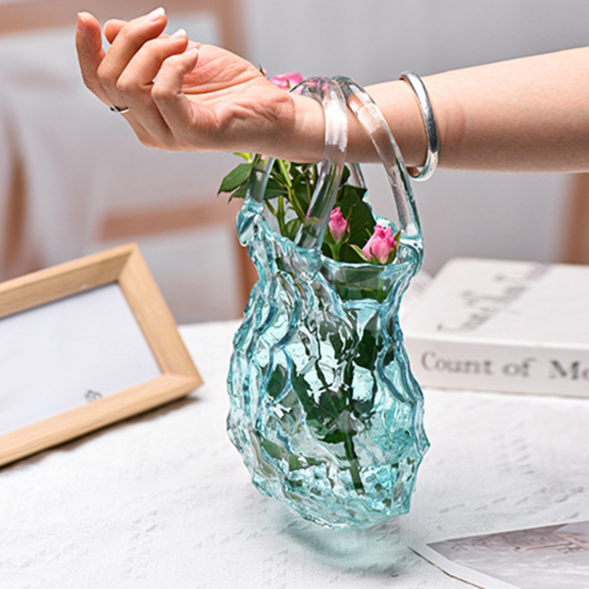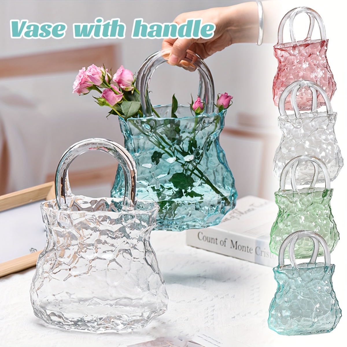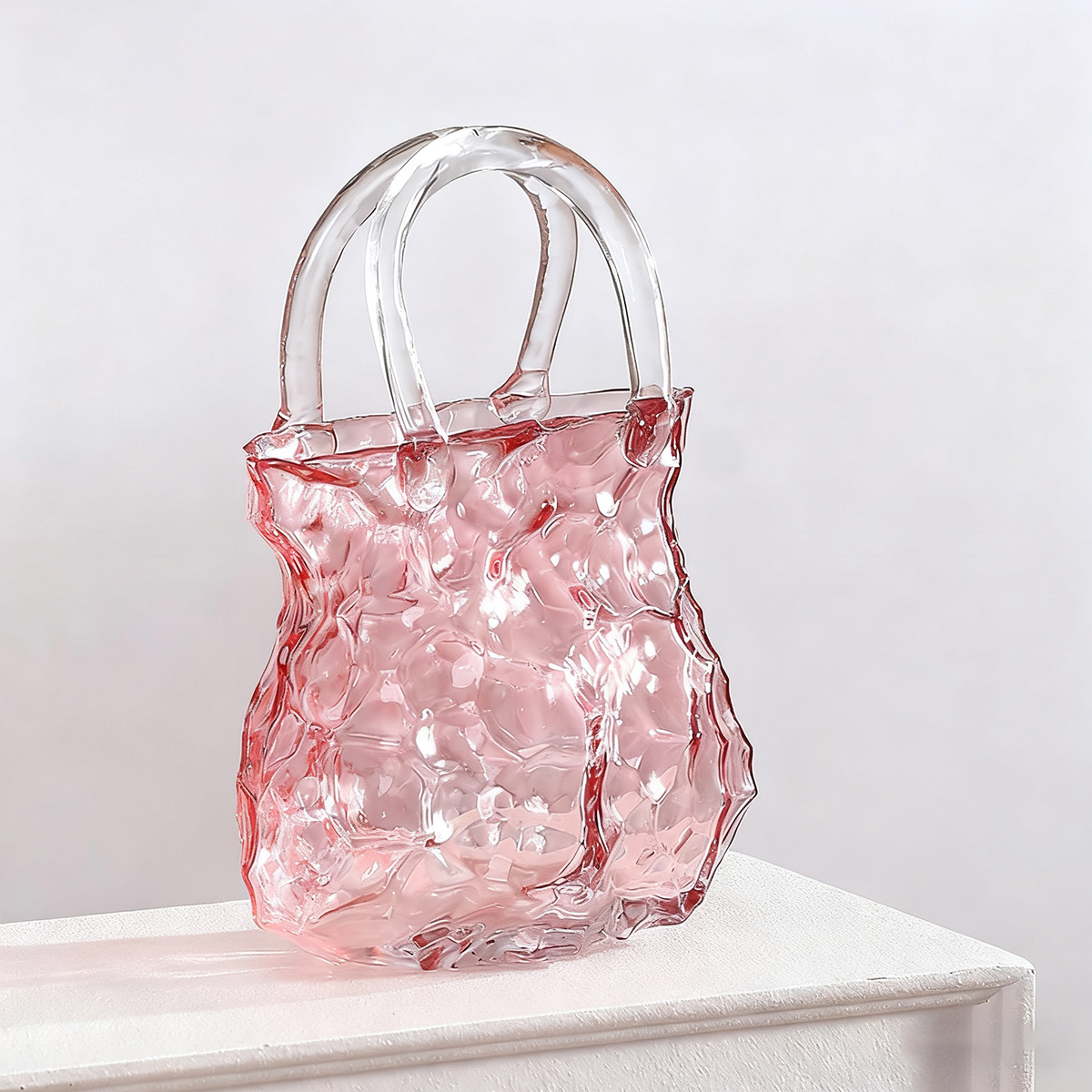 Enchanting light effects Creative Modern Handbag Glass Vase | Nordic INS Style, Transparent Rock Pattern, Irregular Design, Hydroponic Plant Container, Art Decoration, Artistic Fish Tank